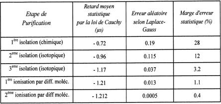 A partir de la troisième, le gain ainsi obtenu devient négligeable devant la complexité technique de l'appareillage nécessaire à l'opération. Le tableau présenté ci-dessus présente une comparaison entre les « retards négatifs » obtenus à plusieurs stades de purification et de diffusion. Il ressort de l'étude de ce tableau que si on veut prétendre à un minimum de précision et de reproductibilité dans les mesures, il convient d'utiliser un élément dopant purifié suivant la méthode décrite. Dans les expériences et mesures suivantes, on utilisera des éléments dopeurs ainsi purifiés.