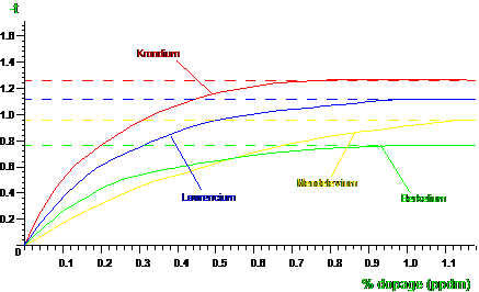 Fig. 3 : Retard négatif en fonction du dopage pour l'élément Krondium